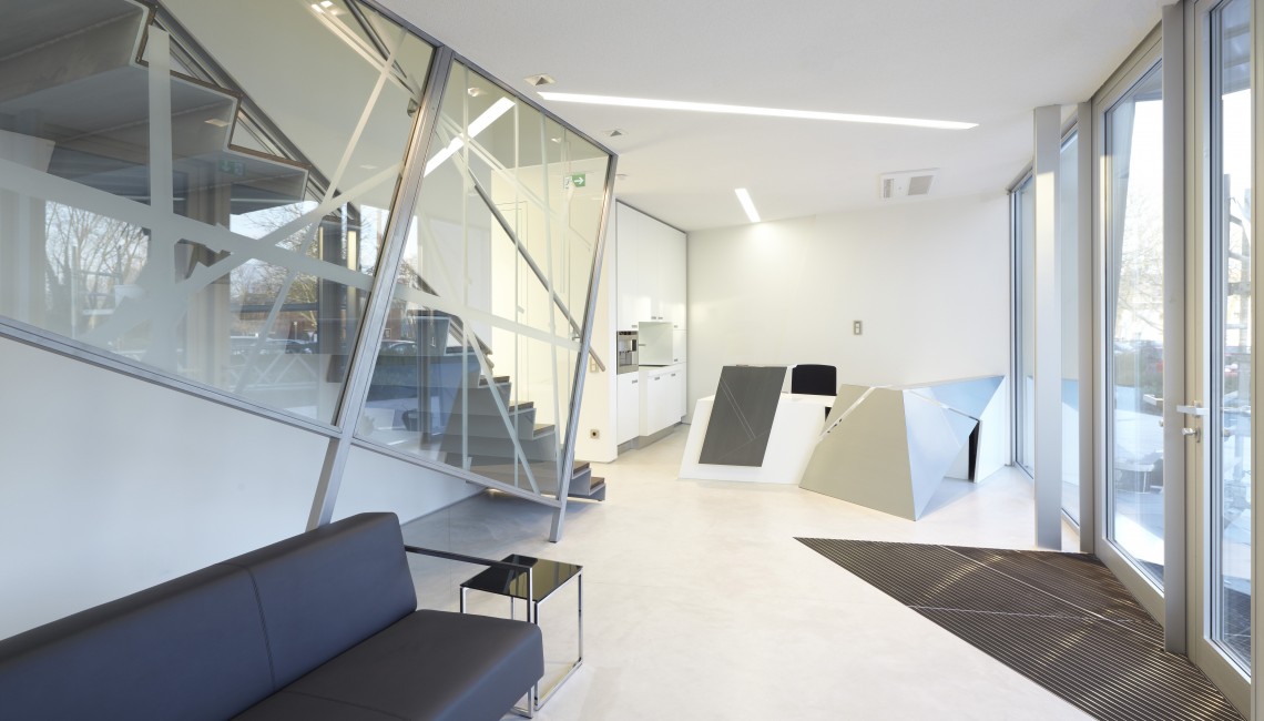 Konstrukce se skládá ze tří, vzájemně propojených svazků s nápadnými úhly a vytváří tak asymetrický, dvou výškový a dynamický interiér. Tato vila na trhu vyplňuje mezeru mezi výjimečnými domy na zakázku a těmi ze sériové výroby. Konstrukce je přizpůsobitelná, připravená k objednání a dodání na své místo ve zlomku času. Montáž zahrnuje také komplikované zámečnické práce.