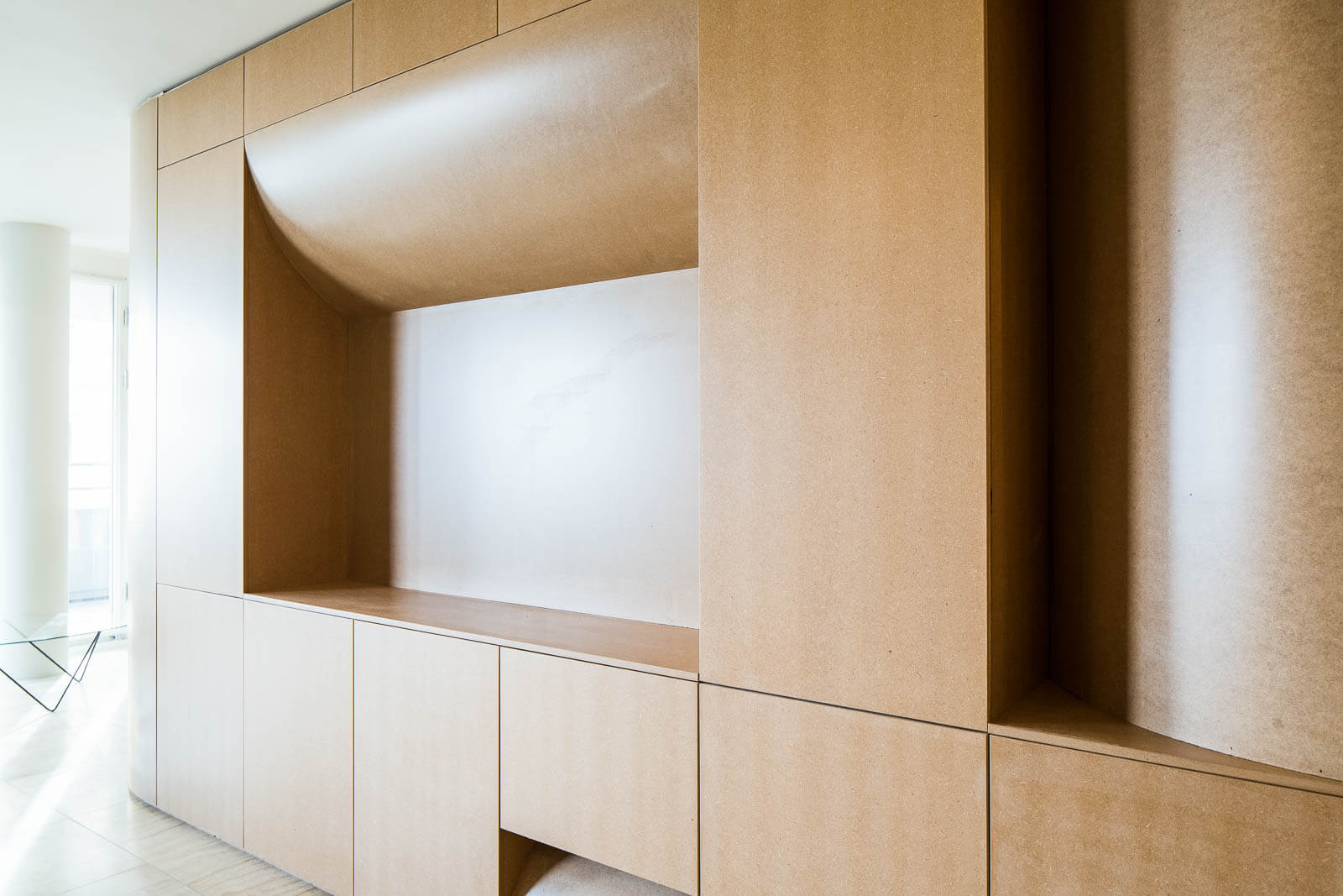 Tento projekt má velký sochařský objem zhruba v polovině interiéru, který definuje prostory okolo něj. Každá strana má svou vlastní funkci a uvnitř se dokonce nachází koupelna. Objem je navržen tak, aby byl sochařským uměleckým dílem, ale zároveň si zachoval svou funkčnost. Obsahuje mnoho úložných prostor, šatní skříň a kuchyň.