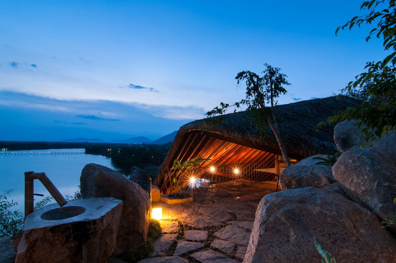 Hlavní nosné trámy (10x25 cm) pomáhají konstrukci překlenout 11 metrů a ve výšce 2,3 metrů nad zemí nabízejí hostům možnost vychutnat si krásný výhled na řeku a centrum města. Nad touto dřevěnou konstrukcí se nachází kombinace 3 vrstev - 20 mm silné dřevěné desky, které dodávají stropu estetický vzhled a propojují všechny nosníky dohromady, vodě odolná membrána a 30 mm kokosové listy. Všechny tyto části jsou spojeny pomocí původních stavebních technik, drážek a kloubů. Původní konstrukčními metody, místní materiály - jako jsou třeba kameny či kokosové listy, vyztužená ocel a různorodé dlaždice mají hostům přinést harmonii a přirozený pocit.