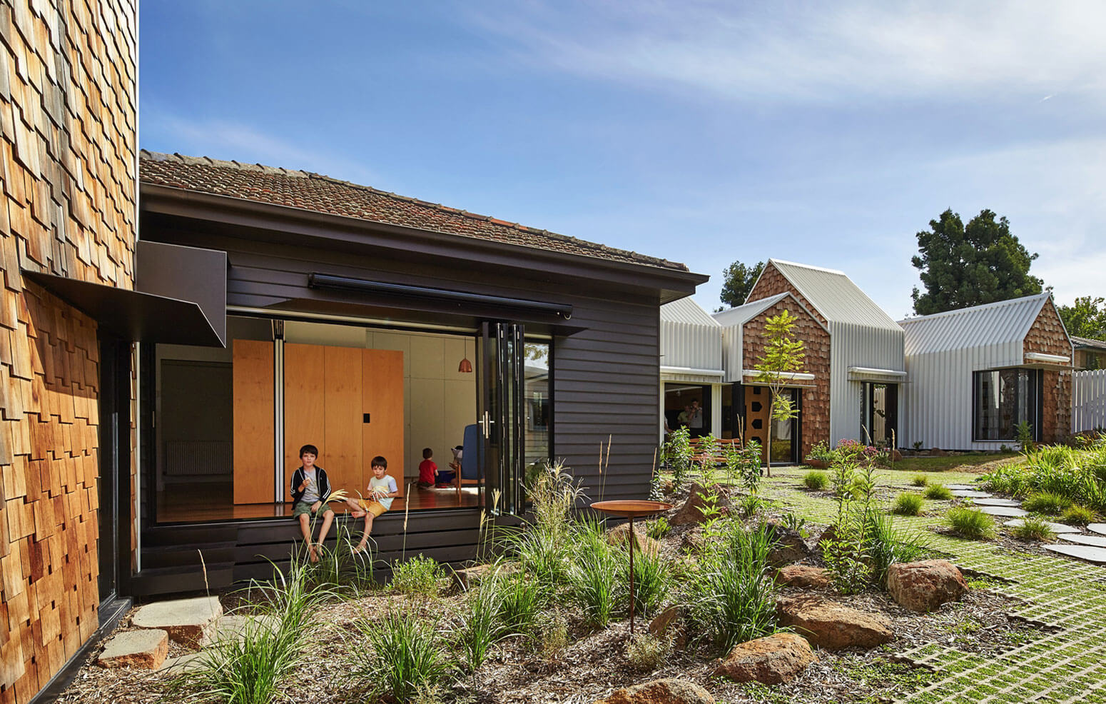 Andrew Maynard Architects vytvořili na přání manželů a jejich dvou synů dům doslova na jejich přání. Rodina toužila po domově, který v sobě zahrnuje komunitní život, umění a přírodu. Tito architekti jim postavili vlastní malou vesnici. Tento projekt je renovací a zároveň extenzí stávajícího letního sídla rodiny. Celý návrh stojí na aktivní komunikaci a diskuzi mezi rodinou a architekty.