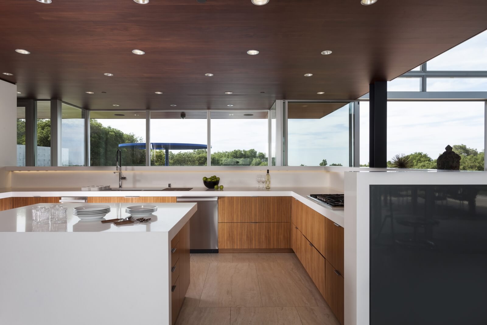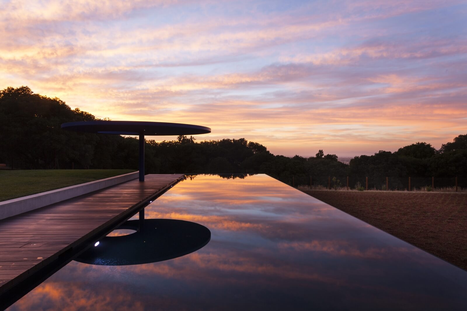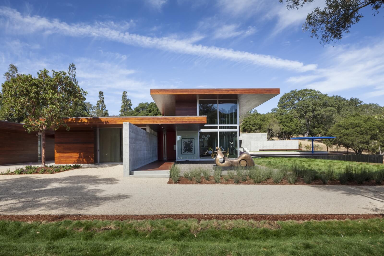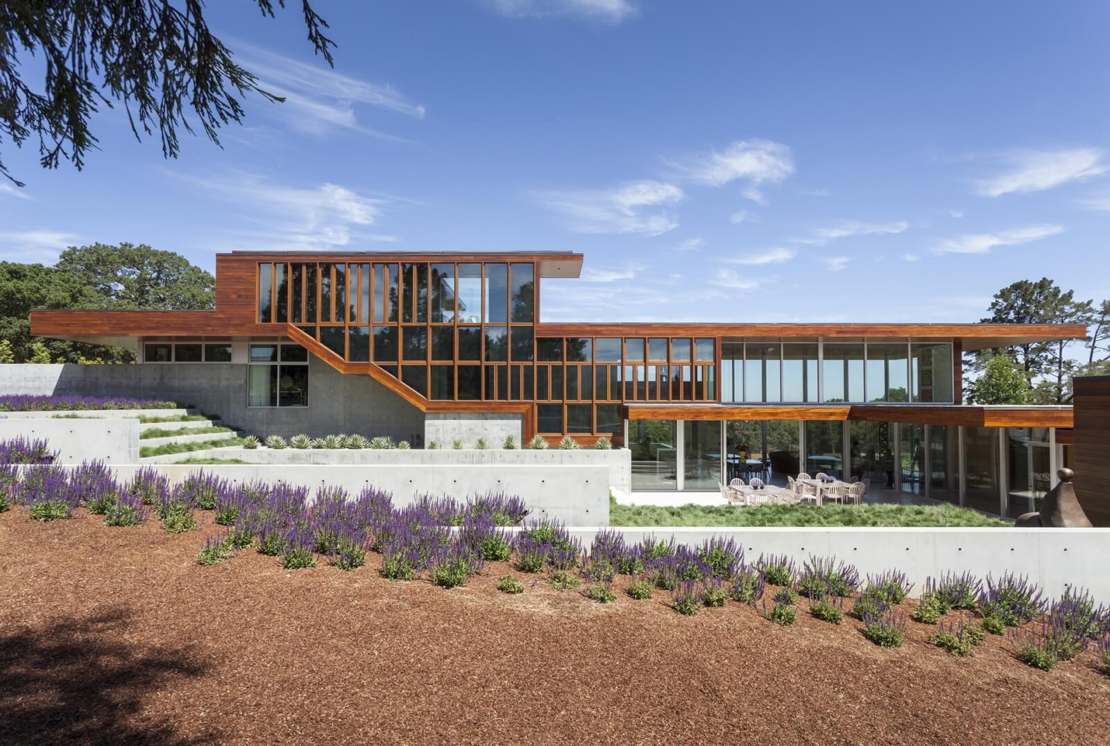 Klientka zvažovala vybudování svého vysněného domu po celá léta předtím, než našla perfektní místo. Tím se stala venkovská enkláva Portola Valley v Kalifornii, na poloostrově, který se nachází jižně od San Franciska. Na ploše 3.8 akrů se nachází krásný, mírně svažitý pozemek s letitými duby, cedry a borovicemi. Ty jsou dostatečně husté, aby zajišťovaly soukromí v rámci sousedních domů, ale zároveň dost otevřené, aby poskytly nádherné výhledy na okolní kopce a vzdálené San Francisko.
