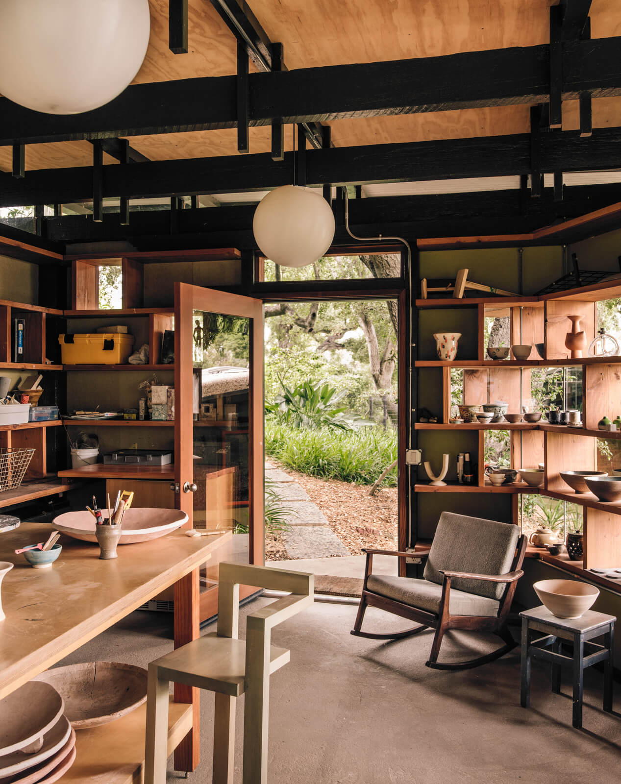 Paní domu má jako koníček výrobu keramiky, a proto jeden ze zahradních domků slouží právě tomuto účelu.
