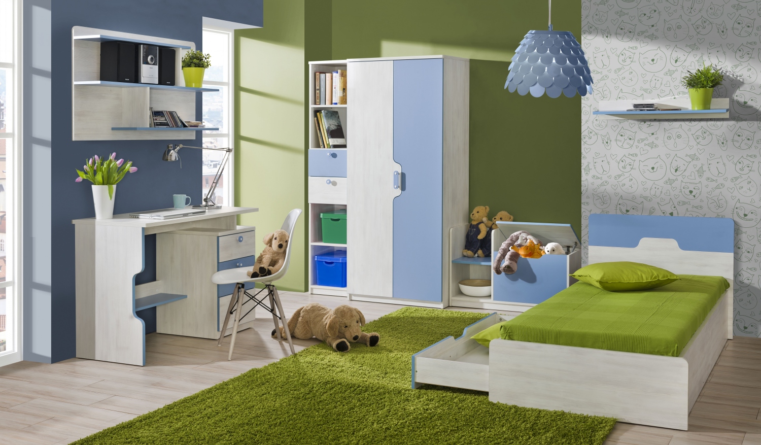 Stroze a neútulně zařízeným dětským pokojům již naštěstí dávno odzvonilo! Nyní jsou při jejich vybavování v kurzu především pestré barvy, které se postarají o navození veselé a hravé atmosféry. Pokud chcete pokoj svého potomka pojmout právě v tomto duchu, nechte se inspirovat moderní nábytkovou sestavou Noly, jejíž součástí je praktický psací stůl pro vypracovávání domácích úkolů, 2 různé závěsné police na knihy nebo vystavení oblíbených dekorací, policová skříň na úschovu oblečení, dětská truhla na hračky, praktický policový regál a pohodlná postel s úložným prostorem na lůžkoviny.