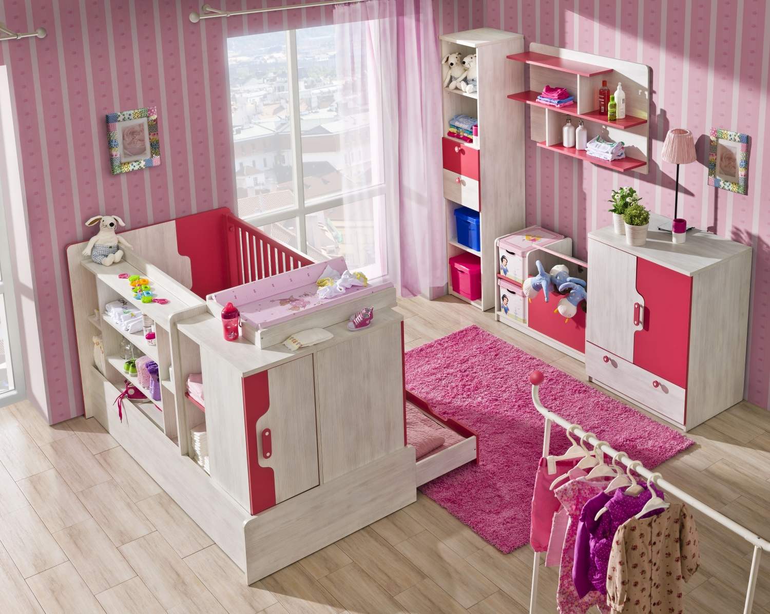 Postýlka, která je opravdu multifunkční, v sobě zahrnuje nejen přebalovací pult, ale také promyšlený úložný systém, takže veškeré potřeby pro péči o svou ratolest budete mít pohodlně po ruce. Co do funkce nezůstává pozadu ani nápaditě řešená dětská komoda, kterou můžete využít k ukládání prádýlka. Truhla poslouží k úschově hraček, policový regál k umístění oblíbených pohádkových knížek a nástěnná police je ideální k vystavení dekorací, fotek a podobně.