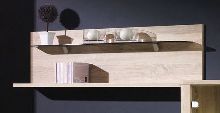 Police nmusí být jen účelová, ale i zajímavá! Tato nástěnná police o šíři 127 cm může být využita v jakékoli místnosti vašeho interiéru a to nejen v domácnosti. Police je opatřena závěsným panelem, který slouží jako bariéra mezí zdí a vystavenými předměty. Na polici je patrný reliéf dřevěného dekoru, který je laděn do světlých odstínu v provedení Dub sonoma.