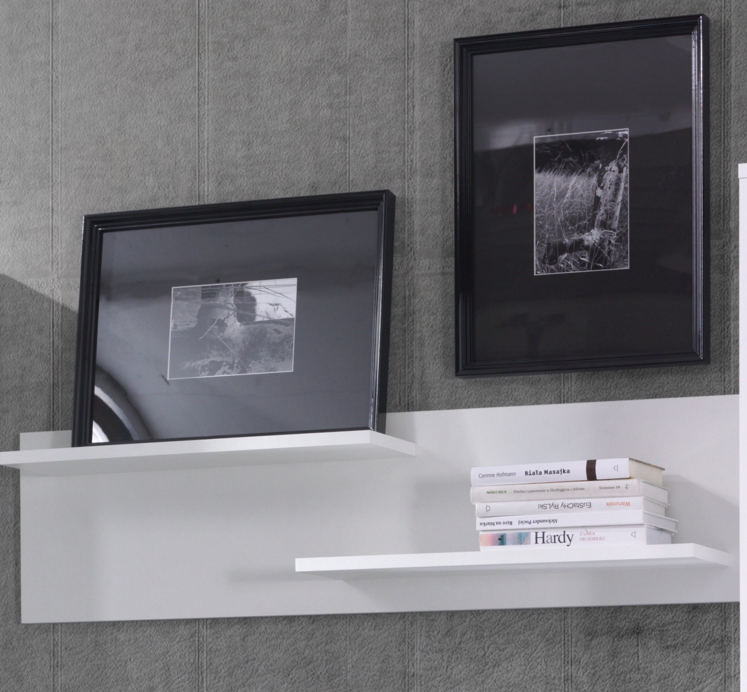 Skládá se ze závěsného panelu a dvou polic umístěných v rozdílné výšce. Na výběr je kromě vyobrazené bílé varianty také provedení ve světlém přírodním dekoru dub sonoma, s charakteristickou kresbou dřeva. Na výrobu bylo použito klasické lamino, které vyniká svou dlouhodobou tvarovou i barevnou stálostí.