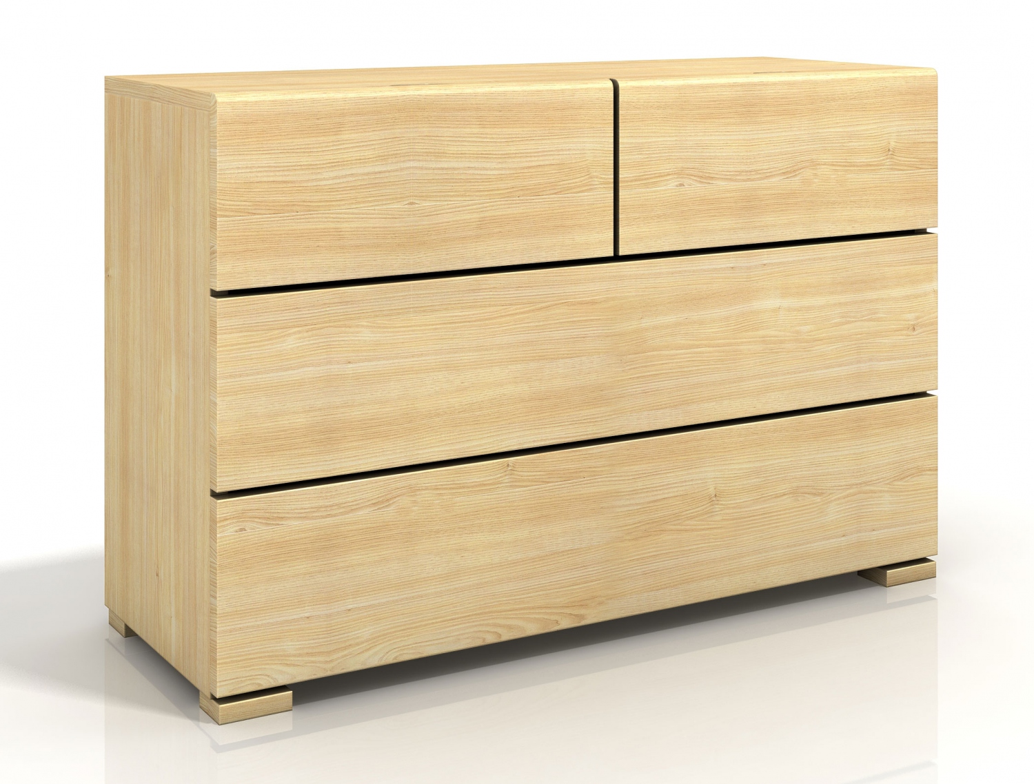 Kvalitní dřevěná komoda Visa 2 se stane oblíbenou a spolehlivou součástí vašeho interiéru. Můžete do ní jednoduše uložit své drobnosti, prádlo, kosmetiku nebo bižuterii. Manipulaci s uloženým obsahem vám usnadní koncepce komody jako zásuvkového dílu. Spodní dvě větší zásuvky jsou doplněné dvěma menšími zásuvkami v horní části. Ty jsou opatřeny rafinovaně zahloubenými úchyty v horní desce konstrukce a neruší tak dojem z hladké přední části.