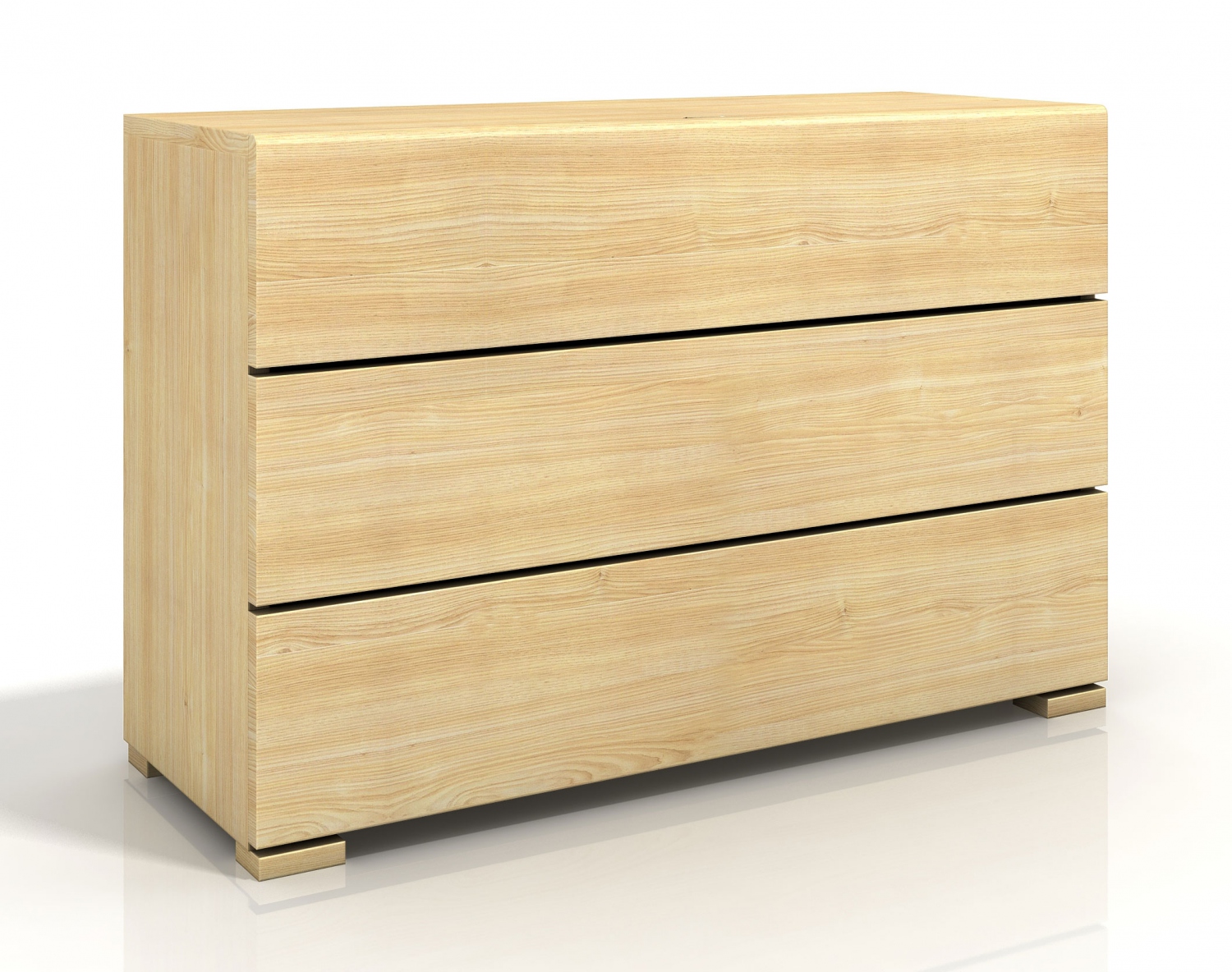 Komoda vyniká koncepcí do tří prostorných zásuvek, kam můžete spolehlivě ukrýt předměty, které už nenašly své místo jinde a chránit je před prachem a nečistotami. Úchyt vrchní zásuvky je vyhlouben do vrchní desky komody, aby nerušil celkový čelní dojem. Dřevěný tón komody si můžete zvolit jak z přírodního zbarvení borovice, tak z dalších pěti variant moření. Pokud budete chtít ideálně sladit svůj pokoj, nechte se inspirovat také dalšími komponenty z řady Visa.