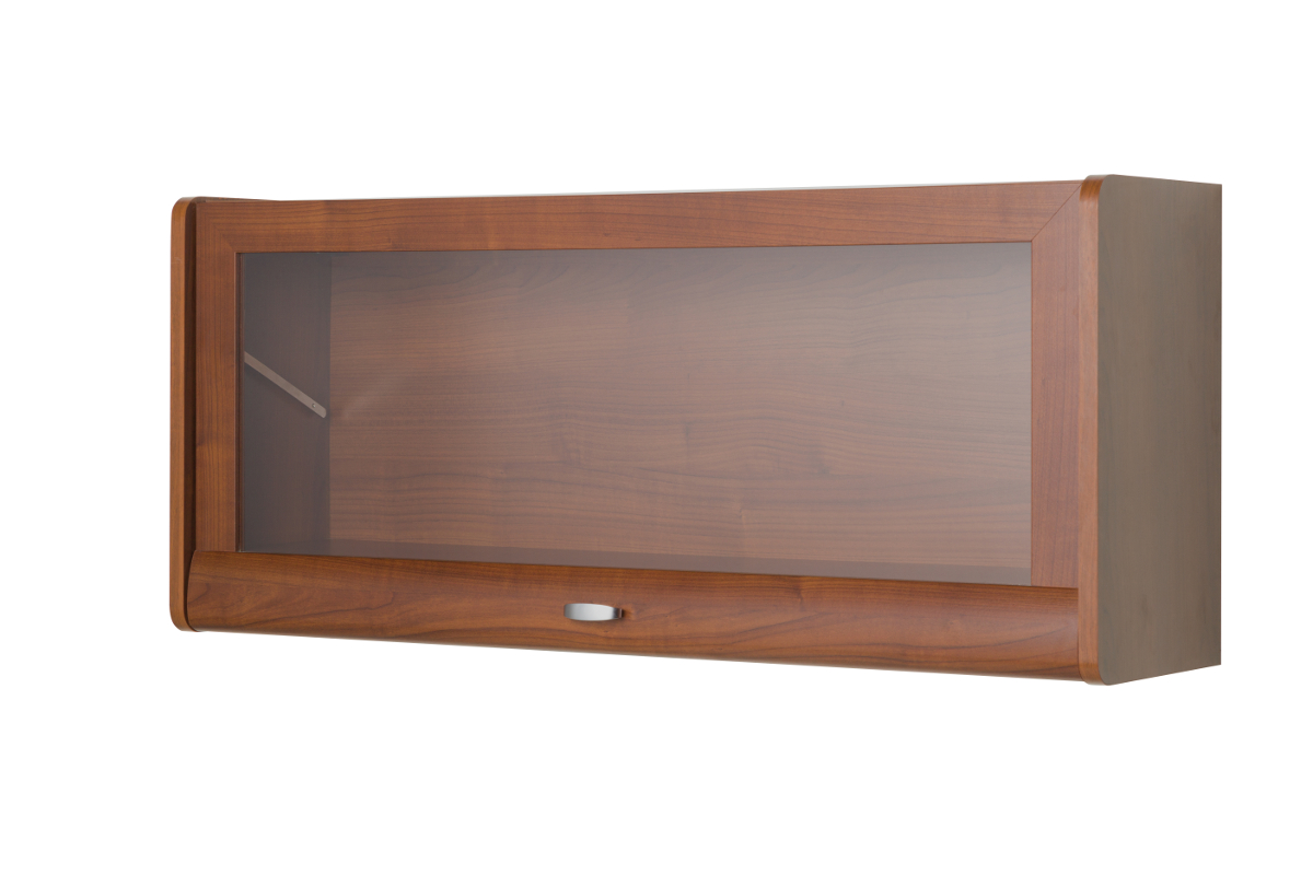 Jako stvořená k tomuto účelu je nástěnná skříňka Aleta, vyhotovená z pevného, na povrchovou údržbu nenáročného a vůči oděru odolného materiálu. Použité lamino vyniká rovněž tvarovou stálostí a barevnou neměnností, díky čemuž si nábytek zachová původní vzhled v téměř nezměněné podobě po celou dobu mnohaletého užívání. Spodní část výklopných dvířek je ozdobena lištou o šířce 80 mm, výplň tvoří čiré tvrzené sklo o síle 4 mm.