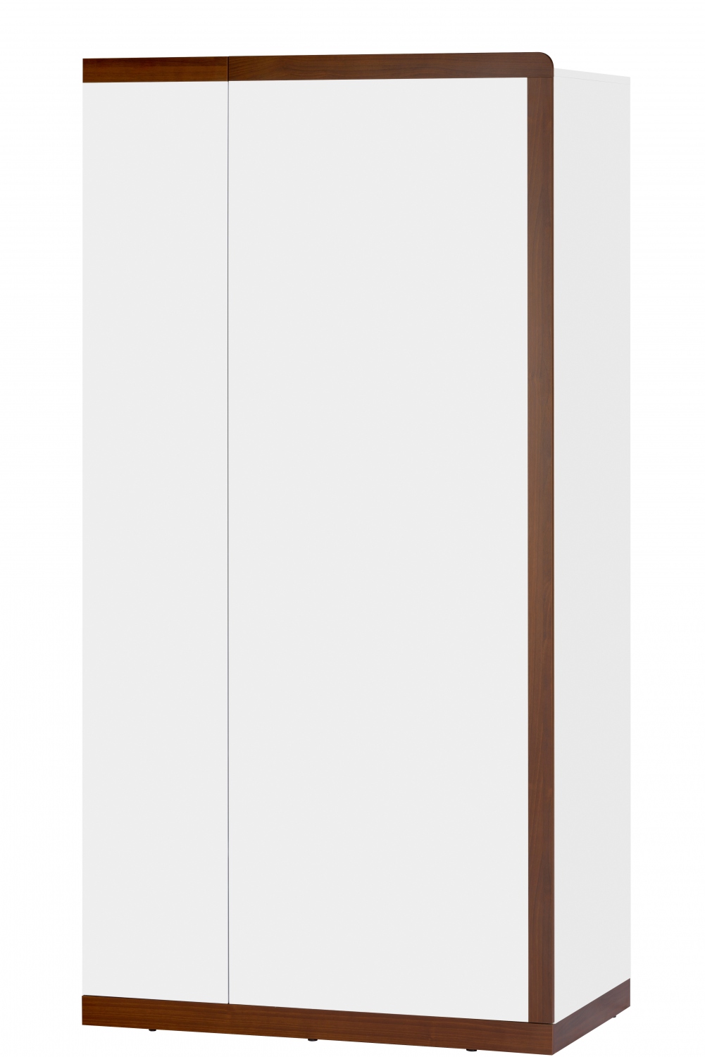 Skříň je vyrobena z prvotřídního lamina, je tedy odolná a má pevnou konstrukci. Stabilita skříně je zaručena skrytými plastovými podstavci, které korigují případné nerovnosti podlahy. Skříň je dělena dvěma policemi v horní a spodní části. Střed skříně slouží k zavěšení choulostivého oblečení na šatní tyč, která je součástí balení. Stylové barvené provedení bílý lesk s okraji ořechové barvy prosvětlí každý interiér. Skříň je pro svůj minimalistický design ideální součástí ložnice nebo obývacího pokoje.