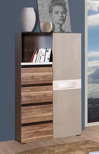 Komoda je rozdělena na dvě části s rozdílným úložným prostorem. V jedné se nachází uzavřená skříňka se dvěma vloženými policemi, v té druhé zase čtyři šuplíky a otevřený prostor. Komodu doporučujeme umístit do obývacího pokoje, ale věříme, že díky její všestrannosti si najde umístění i v jiných místnostech. Ve stejném provedení nabízíme i další produkty z kolekce Esperanza.