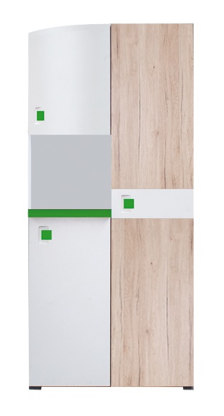 Dovedete si představit kombinaci bílé a hedvábně bílé? A to ještě není všechno. Na přední části skříně naleznete také decentní dekor dubu san remo a zelenou či růžovou barvu. Tu si zvolíte podle stávajícího nábytku i vkusu svého dítěte. Skříň je vyrobená z odolného LTD materiálu nenáročného na povrchovou údržbu. Mezi hlavní výhody patří dlouhá životnost a neměnnost vzhledu.