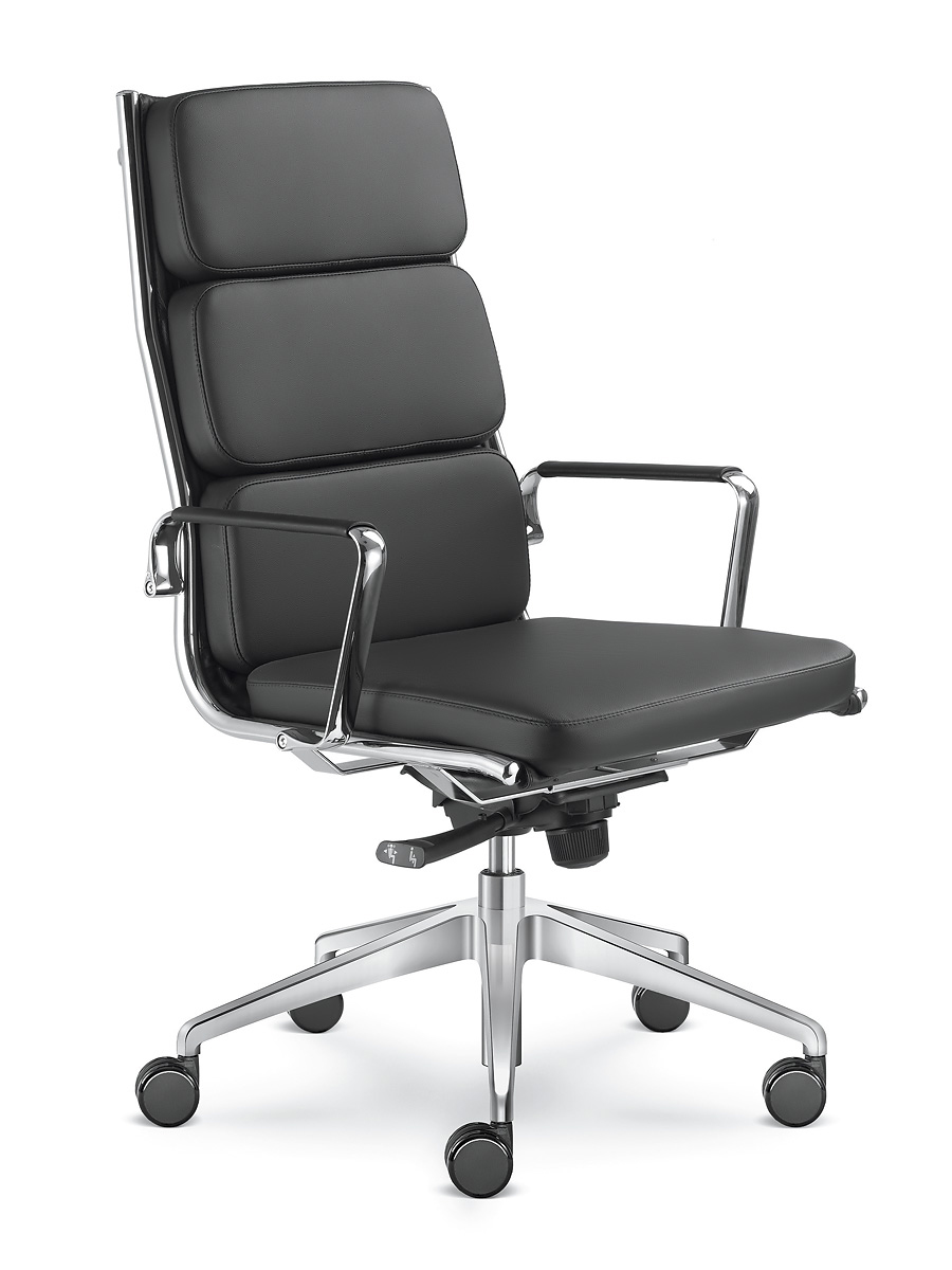 Kvalitní konstrukce snese zatížení až 120 kg, zaručena je tedy dlouhá životnost kancelářského křesla. K opření rukou i celého těma poslouží leštěné hliníkové područky s černými koženými návleky. Kříž křesla je také vyroben z leštěného hliníku. Na kříži jsou usazena kolečka s pryží vhodné na tvrdou podlahu.