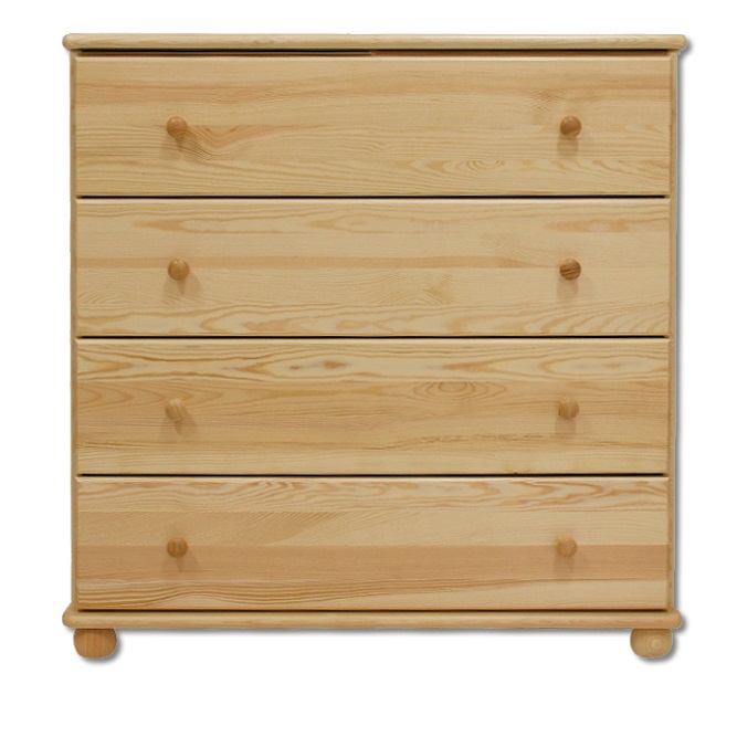 Potřebnou stabilitu zajišťuje nejen zvolený materiál, ale také malé podpůrné nožky, jimiž je komoda opatřena. Úložný prostor je tvořený čtyřmi výsuvnými šuplíky, jenž pojmou oblečení i další potřebné věci. Pro snazší manipulaci jsou opatřeny decentními úchytkami, které dotvářejí celkový vzhled komody.