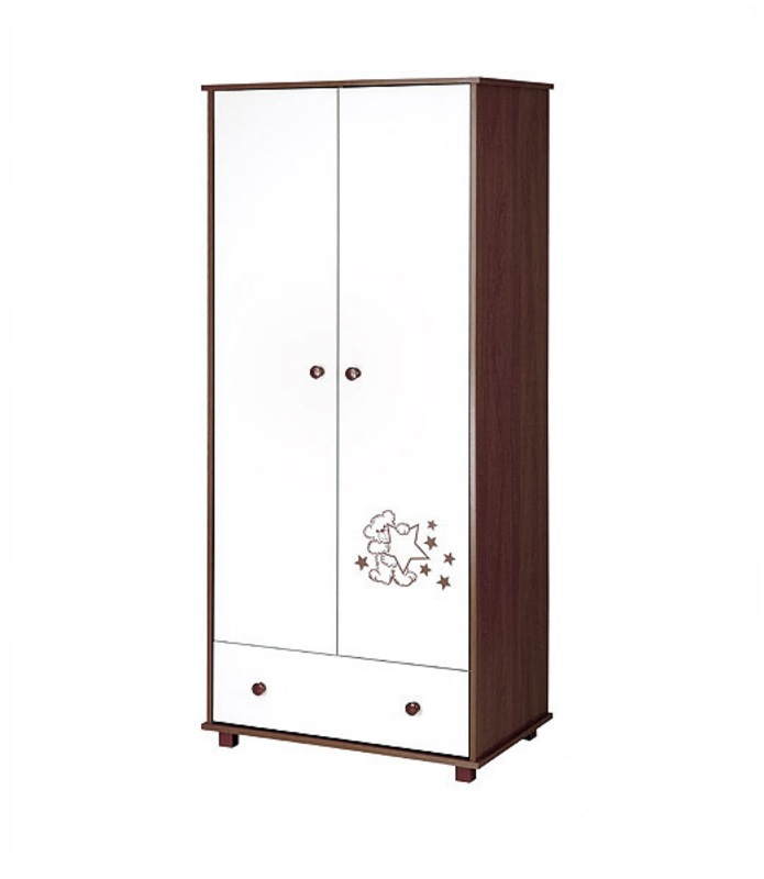 Potřebujete někam umístit různé druhy oblečení vašeho dítěte? Šatní skříň Dobi vám nabízí kombinaci více druhů úložných prostor. Na klasickou šatní tyč pověsíte ramínka a poskládaná trička uložíte na police. Ponožky či kapesníky uschováte do hlubokého šuplíku.