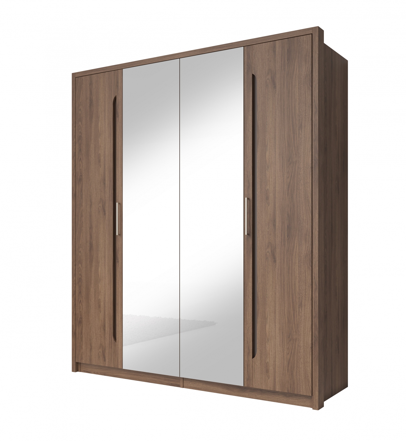Najděte šaty pro každou příležitost během několika chvil. Ve velké šatní skříni Teriel 2 oblečení přehledně uspořádáte, ať už jej zavěsíte na šatní tyč či uložíte do 5 prostorných polic. Součástí čtyřdveřové skříně je navíc i dvojité vysoké zrcadlo, ve kterém zkontrolujete svůj bezchybný vzhled od hlavy až k patě.