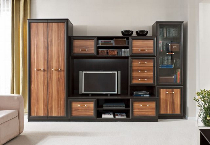 Komplet Toetra se skládá ze 4 elementů: skříně s velkým úložným prostorem, praktické vitríny, skříňky RTV a nástavce, jehož prostor byl oddělen poličkami, skříňkami s uzavřenými dvířky a zásuvkami. Tyto praktická řešení se osvědčují ve společenských místnostech, kde je funkčnost prioritní. Efektivní spojení dvou barev - švestky wallis a wenge - dokonale zpříjemňuje interiér.