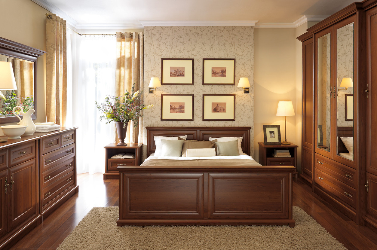 Plnohodnotný spánek si s vaším partnerem užijete na manželské posteli s ložnou plochou 160 x 200 cm. U té samozřejmě nesmí chybět 2 noční stolky se zásuvkou a otevřenou přihrádkou. Oblékáte se ráno v ložnici? Pak oceníte nejen 2 komody, ale také čtyřdveřovou skříň se zrcadlem. Součástí sestavy je také samostatné zrcadlo k zavěšení na stěnu.