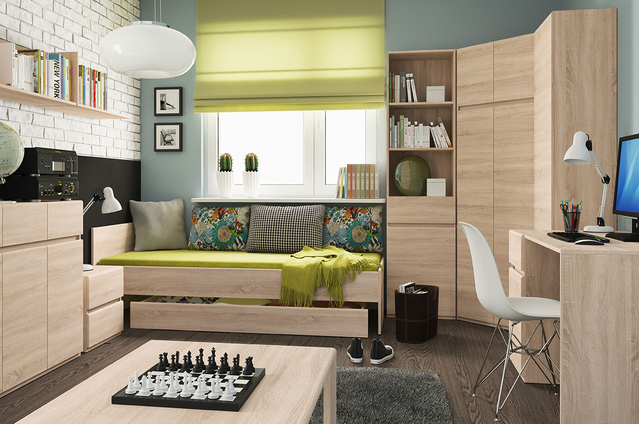 Děti potřebují spoustu místa. Dopřejte jim ho ve studentském pokoji Study s postelí s ložnou plochou 90 x 200 cm.