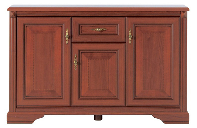 Váš domov zútulní bohatě zdobená přední strana s kovovými úchytkami a příjemná barva antické třešně. Jako materiál byla zvolena kombinace LTD a MDF desek, která vás potěší snadnou údržbou a dlouhou životností.