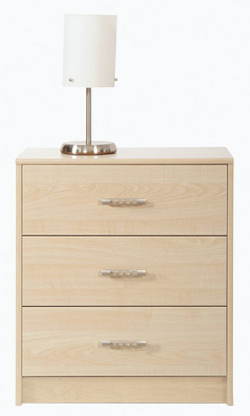 Odolné lamino dává komodě tu správnou pevnost a stabilitu. Dekor javor nida a olše medová barevně ladí s charakteristickými úchytkami ve stříbrné barvě. Montáž komody je snadná.