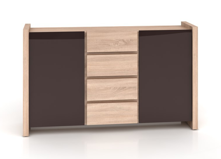 • Praktický příborník Regiana 1. • Příborník obsahuje 2 skříňky s policí a 4 zásuvky. • Je vybaven kvalitními kolejničkami a kováním s tichým dojezdem. • Dostupné provedení je v barvě dub sonoma / bílý lesk nebo dub sonoma / černo-hnědý vysoký lesk. • Snadná montáž.