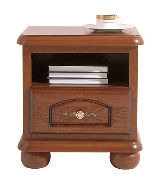 Stolek je vyroben kombinací materiálů LTD a masivu a potěší vás také jeho barevný dekor, který je kombinací odstínů kaštan a ořech italský.