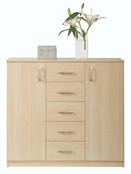 Komoda je vyrobena z odolného lamina, její horní plochu můžete využít pro umístění dekorace či vystavení nových fotografií. Montáž komody je snadná.