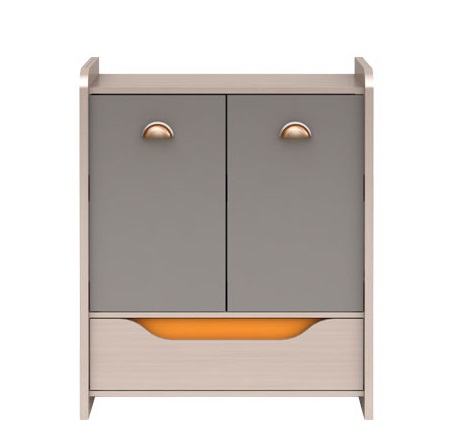 Komoda, která se svým barevným provedením hodí do studentského pokoje, je zdobena prvkem v sytě oranžové barvě. Její vnitřní prostor je vybaven 1 policí, která tak tvoří 2 dílčí úložné prostory. Praktický šuplík v její spodní části je na válečkových kolejničkách, manipulace s ním je velmi snadná a jednoduchá.