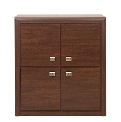 Nábytek je rozdělen na čtyři části a každá z nich obsahuje polici, takže dovnitř uschováte i spoustu praktických věcí. Je vyroben z LTD a MDF, k očištění stačí pouze navlhčený hadřík.