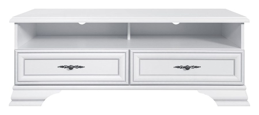 Stolek využijete nejen pro postavení televize, ale do jeho otevřeného prostoru máte možnost odkládat televizní program nebo dálkové ovládání. Dva praktické šuplíky schovají vonné tyčinky nebo slané arašídy, které chcete mít při večerních chvílích odpočinku při ruce.